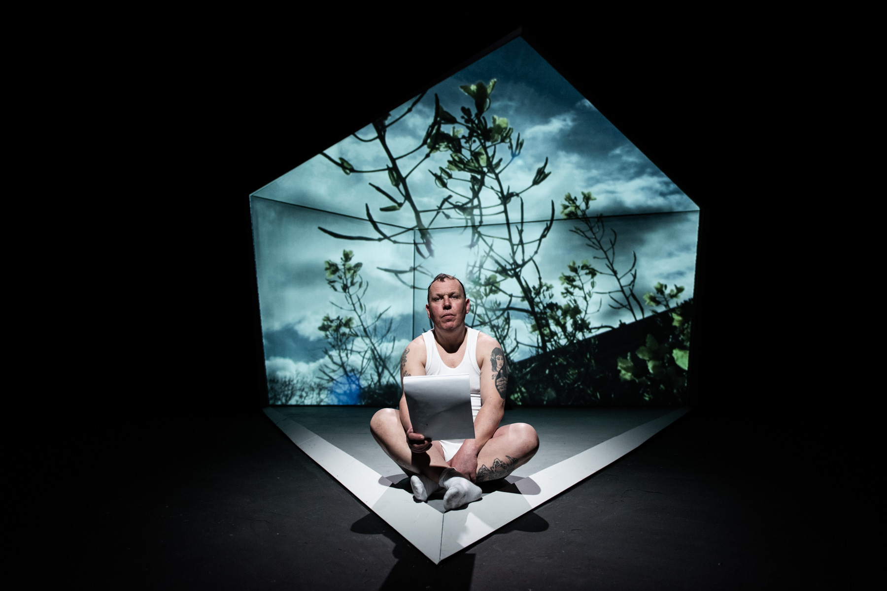 The Examination is a documentary performance work exploring mental health and human rights in the prison system in the UK and Ireland. It is based on historical research and interviews with current life-sentence serving prisoners and performed by stand-up comedian and former prisoner Willie White. ArtFX created a set design that was strongly influenced by the research on issues and social concerns around internment that informed the performance. A room of sorts doubles as a cell and a projection canvas to transport the viewer to alternate locations and times throughout the piece. A high level of careful design utilises forced perspectives and scenic painting to create an illusion of depth and confinement when necessary.